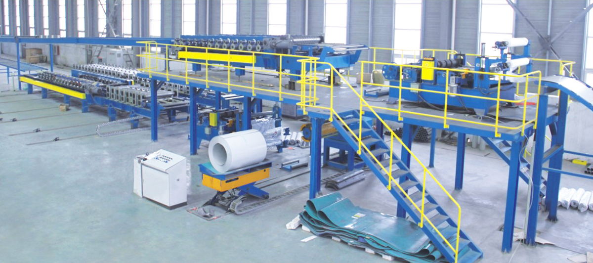 引進聚氨酯板材六組高壓發泡生產線,可根據生產環境溫度和濕度的變化在線調整混合比例,保證發泡結構的均勻細膩;雙履帶保障板面的平整度,板面精整度可控制在0.01CM